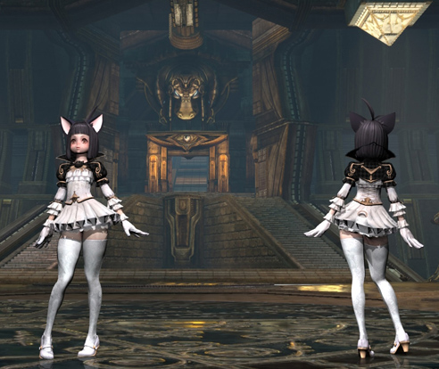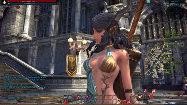 Since this class relies on having an upgraded weapon, changing up weapons in the menu soon became annoying. Even with the auto-sort feature, the miniscule icons and micetype meant that I had to hover over every single weapon during equipping or selling. The user interface there could definitely be improved. Soon enough, within a few levels my equipment was increasingly more interesting and more skin-bearing. The Castanic's shoes were more provocative than the Elf's; there would be longer laceups and platforms, while thigh highs or fishnets would grace the legs.